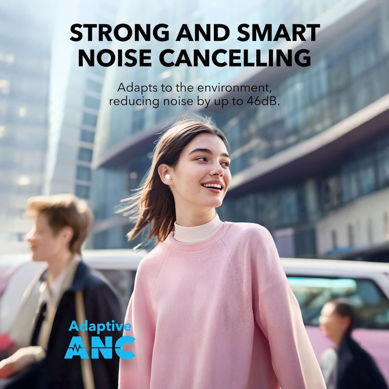 Cancelación de ruido fuerte e inteligente: los auriculares Soundcore A30i bloquean el ruido de hasta 46 dB. Mediante algoritmos adaptativos, el A30i detecta el sonido externo y se ajusta automáticamente de forma inteligente a un nivel adecuado de cancelación de ruido perfecto para usted.