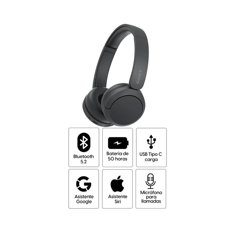 Los Sony WH-CH520 Bluetooth en color negro ofrecen un equilibrio ideal entre calidad de sonido, comodidad y practicidad para el día a día. Con un diseño ligero y moderno, integran funciones inteligentes que mejoran la experiencia de escucha, ya sea en casa, en la oficina o en movimiento.