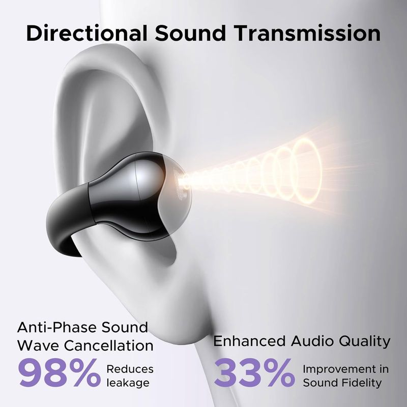 Equipados con Bluetooth 5.4, brindan una conexión más estable, rápida y eficiente, mejorando la calidad de audio y reduciendo la latencia. Su estructura acústica abierta ofrece un sonido natural, equilibrado y cómodo para uso prolongado.