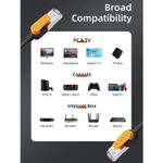 Fabricado con conductor de cobre revestido (CCA) de calibre 26 AWG, chaqueta de PVC resistente y conectores RJ45 chapados en oro para mejor conductividad y mayor vida útil.