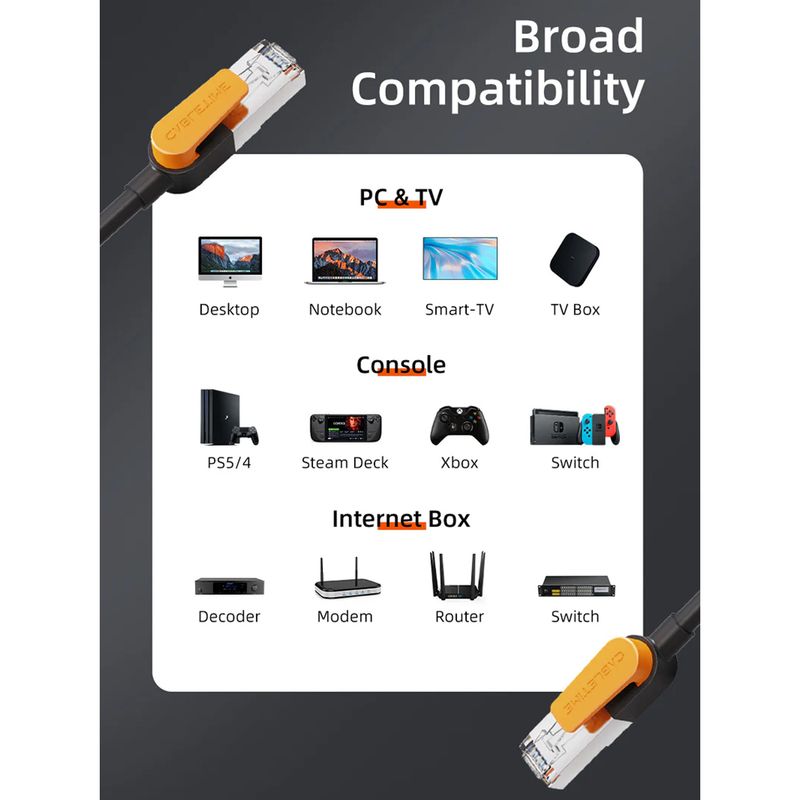Su diseño estándar con conectores RJ45 es compatible con routers, switches, consolas, laptops, PCs y otros dispositivos de red.