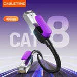 El Cabletime Patch Cord Cat8 (modelo CN80P, 5 m) soporta velocidades de hasta 40 Gbps con un ancho de banda de 2000 MHz, ideal para gaming intenso, streaming 4K/HDR y transferencia de datos avanzada.