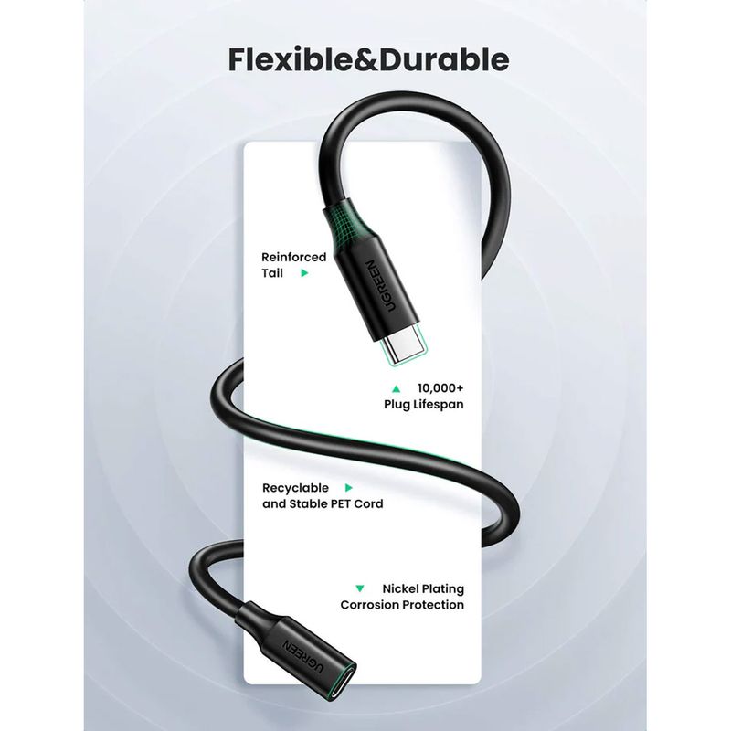 El cable extensor UGREEN USB-C Gen2 permite ampliar la conexión entre dispositivos USB-C, soportando carga rápida y transferencia de datos estable. Con 1 metro de longitud y soporte de hasta 5A, garantiza rendimiento confiable y duradero.