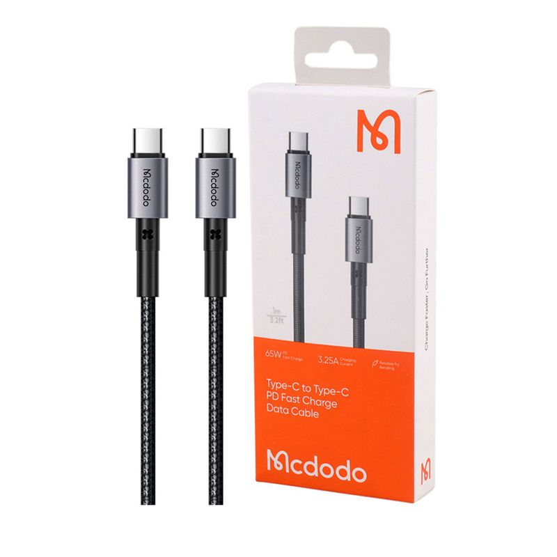 El cable Mcdodo 65W Type-C a Type-C permite carga rápida y transferencia de datos eficiente entre dispositivos compatibles. Con 1 metro de longitud y soporte de hasta 3,25A, garantiza un rendimiento seguro y confiable en smartphones, tablets, laptops y otros dispositivos con puerto USB-C.