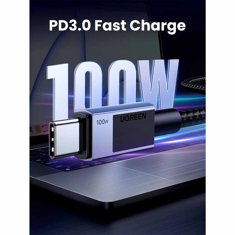 Carga rápida de 100 W: equipado con PD 3.0, el cable USB C de UGREEN puede lograr una carga rápida de 100 W, que puede cargar un iPhone 15 del 0% al 60% en 30 minutos y una MacBook Pro del 0% al 42% en 30 minutos.