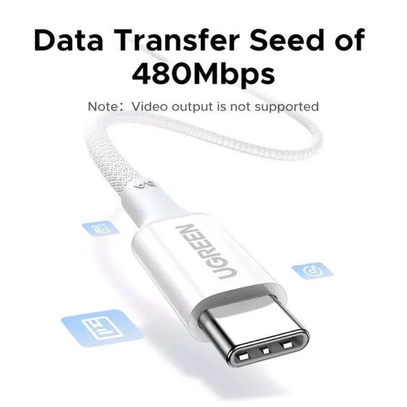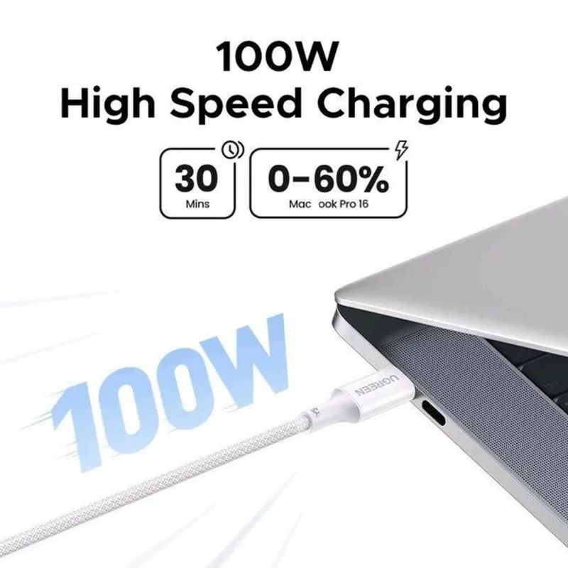 Cable Ugreen USB-C a USB-C PD Fast Charging Trenzado 1M 100W Blanco L502 35220 GC05252
