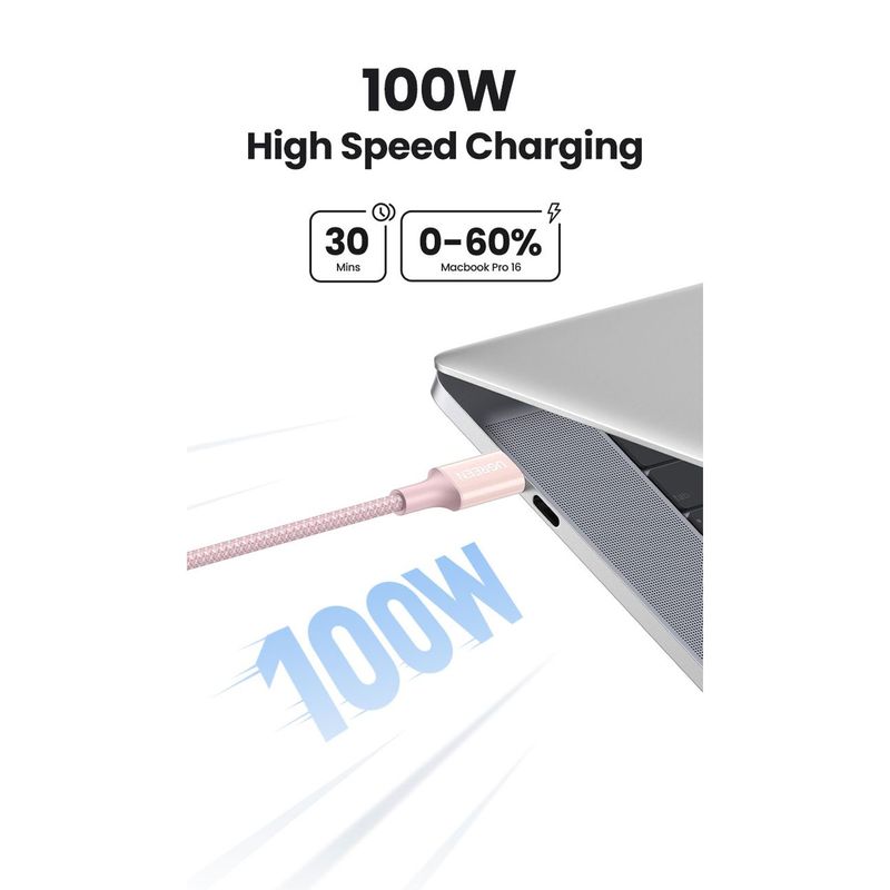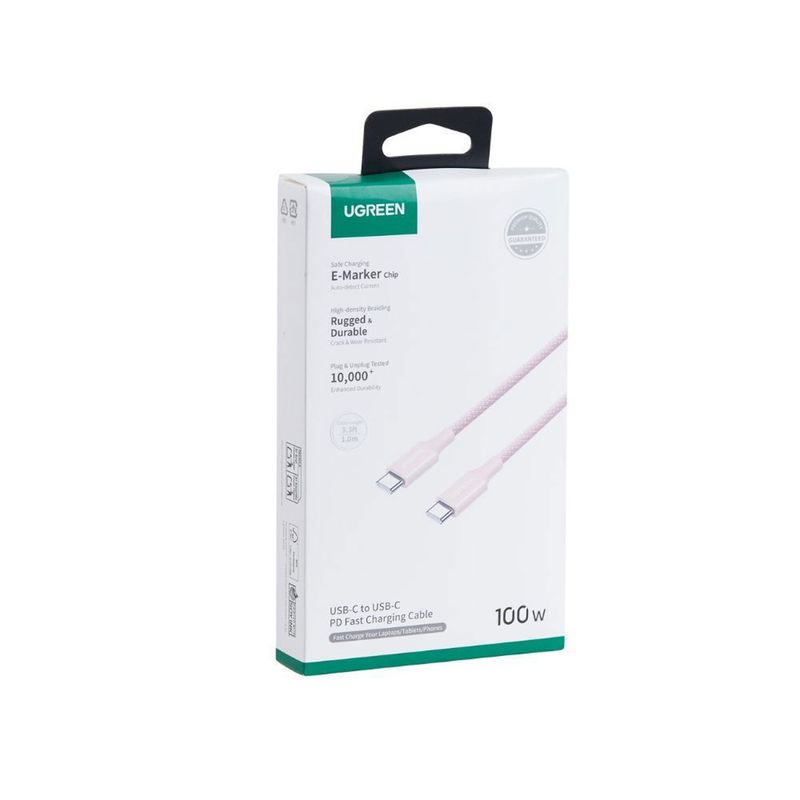 Cable Ugreen USB-C a USB-C PD Fast Charging Trenzado 1M 100W Pink L502 65251