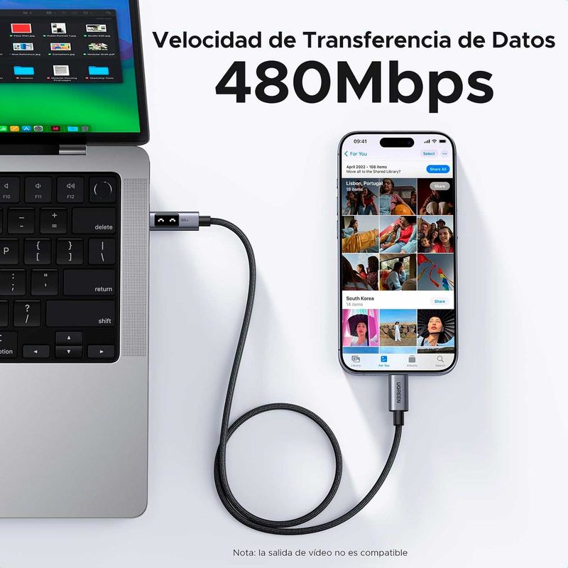 Transferencia de datos: admite una velocidad de hasta 480 Mbps, transmite sin esfuerzo archivos o datos grandes en segundos