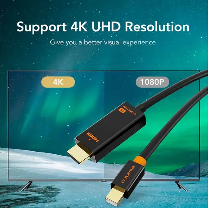 El Cabletime Mini DisplayPort a HDMI es la solución práctica y confiable para conectar dispositivos con salida Mini DisplayPort a pantallas o proyectores con entrada HDMI. Con una longitud de 3 metros, ofrece la flexibilidad necesaria para instalaciones en el hogar, la oficina o entornos educativos.