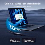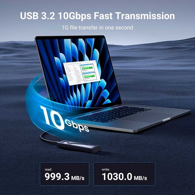 El Adaptador Disco Duro M2 Ugreen NVME y M2 SATA 90264 te permitirá conectar un ssd nvme con una pc con puerto USB 3.2, también conocido como tipo C. Es compatible con los protocolos NVMe y SATA, USB C 3.2 Gen2, haciendo que la velocidad de transmisión de datos del gabinete NVMe sea de hasta 10 Gbps, compatible con Thunderbolt 3. Velocidad de 6 Gbps como gabinete SATA M.2.