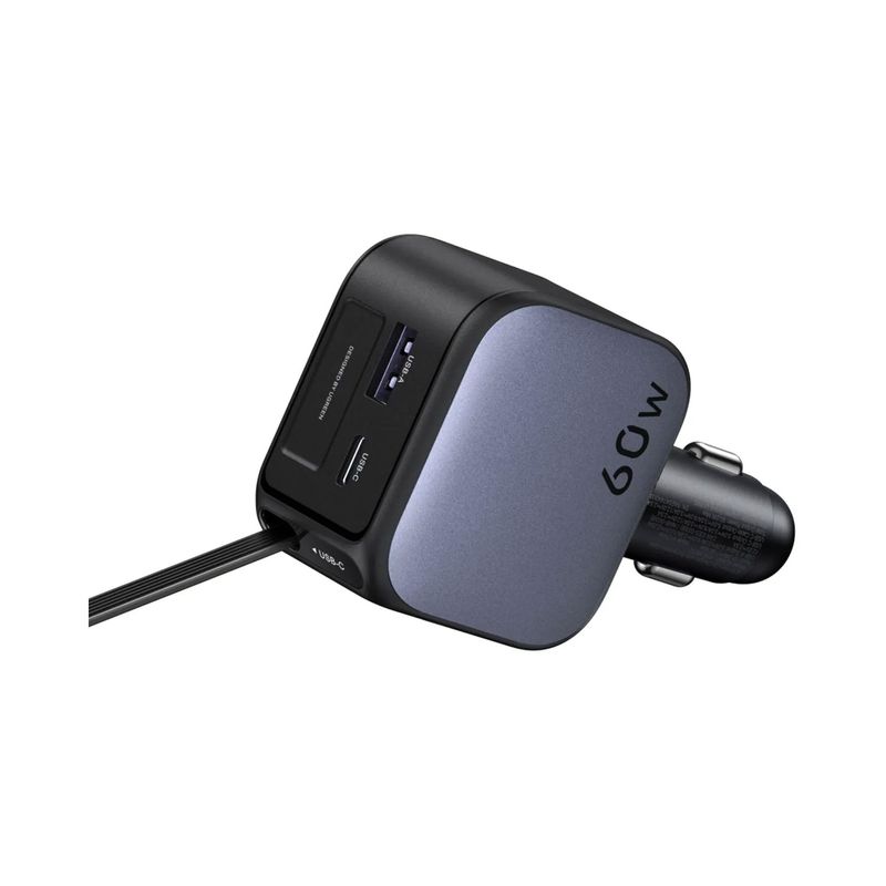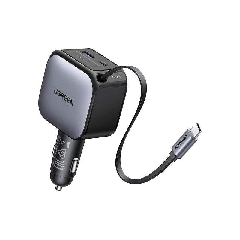 El cargador de auto UGREEN Nexode 60W permite cargar smartphones, tablets y otros dispositivos USB de manera rápida y segura mientras conduces. Su cable retráctil integrado ofrece comodidad y organización dentro del vehículo.