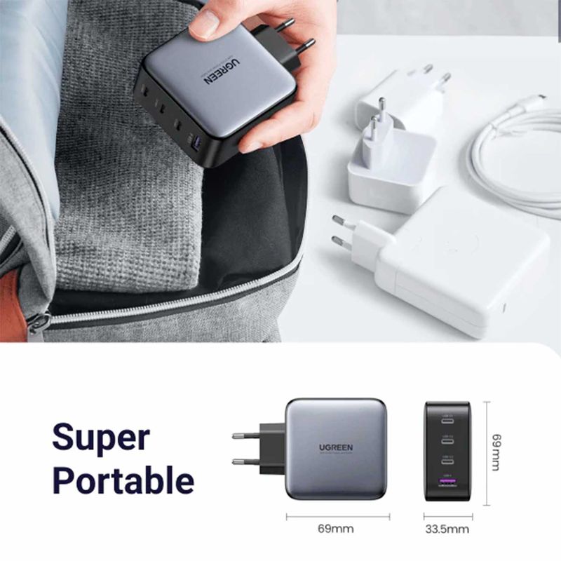 Cargador Ugreen multi-puerto USB-C de 100 W. Cargador de carga rápida con 3 puertos USB-C y 1 puerto USB-A. Ideal para dispositivos como MacBook Pro/Air, Dell XPS, iPad Mini/Pro, iPhone 13/13 Pro Max/iPhone 12, Galaxy S21 y otros.