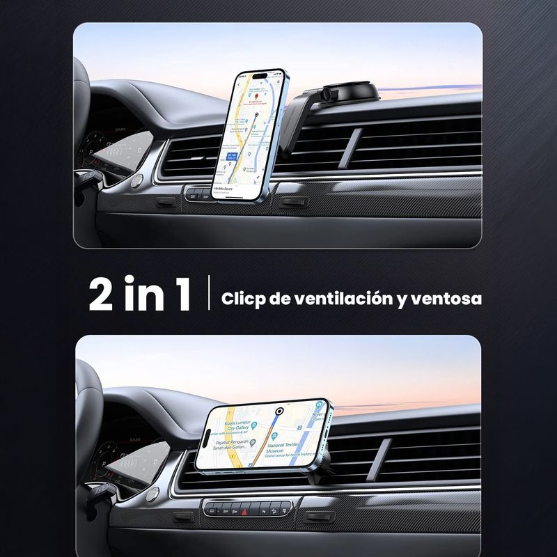 Potente sistema magnético: el cargador inalámbrico magnético para automóvil está diseñado para mantener su iPhone seguro y protegido incluso en caminos con baches o durante paradas abruptas. El cargador para automóvil con soporte Magsafe cuenta con 18 imanes N52H que brindan una increíble fuerza magnética de 11 N, que equivale a mantener cinco iPhone 15 Pros en su lugar de forma segura, y una silicona antideslizante.
