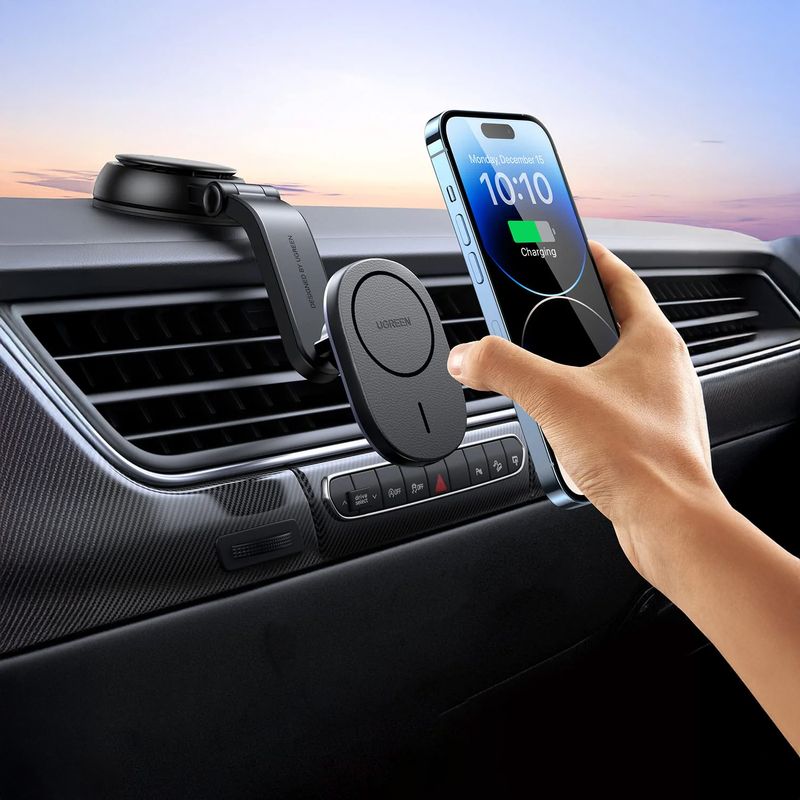 Compatible con iPhone 12/13/14/15: el soporte para cargador inalámbrico para automóvil de Ugreen está diseñado específicamente para la serie iPhone 12/13/14/15 y cuenta con un sistema magnético certificado oficialmente, lo que garantiza una experiencia de carga segura y estable. Tenga en cuenta que no es compatible con teléfonos inteligentes no magnéticos y requiere una funda magnética para teléfono si su teléfono tiene una funda protectora.