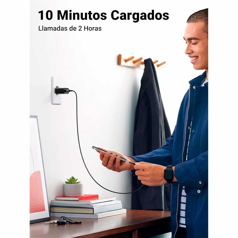 Carga de 2 Puertos Simultánea: Cargador c carga fácilmente dos dispositivos al mismo tiempo a través de los puertos USB-C y USB-A. Más potente y eficiente, ¡perfecto para la carga diaria