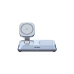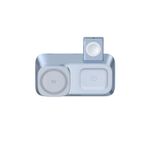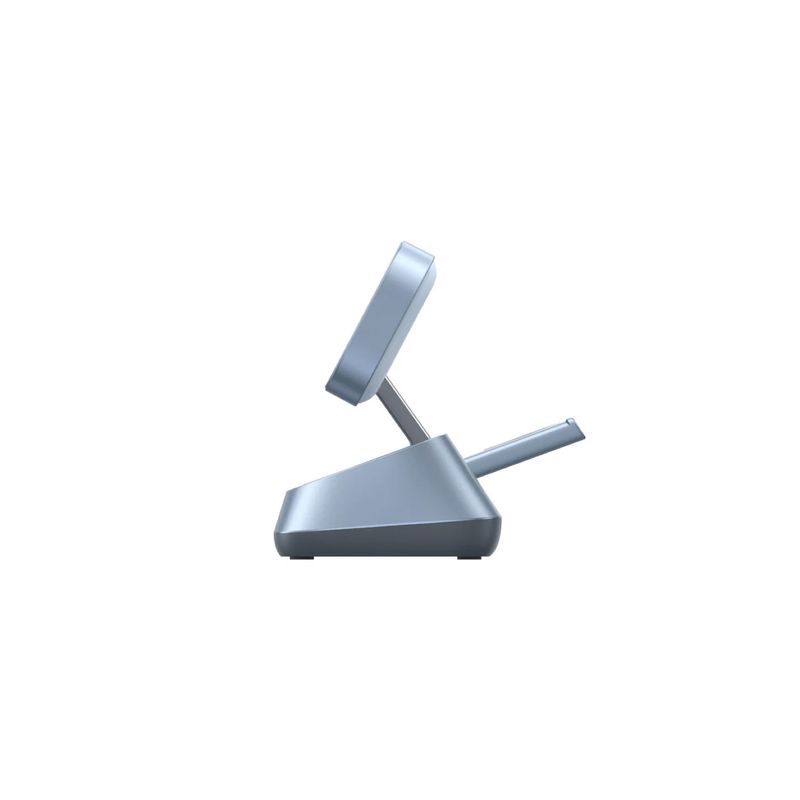 Incluye una base ajustable para reloj inteligente que soporta carga rápida para modelos Apple Watch y compatibles. Además, cuenta con un módulo de carga Qi para audífonos inalámbricos de hasta 5W.