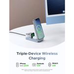 Integrando carga inalámbrica magnética, para reloj y para audífonos en un solo dispositivo, el Cargador UGREEN 3 en 1 MagFlow 25W Qi2 Magsafe Inalámbrico Magnético Plegable W757 - 65901 presenta una solución todo-en-uno compacta. Su diseño plegable y certificación Qi2 lo hacen portátil y eficiente para usuarios que buscan cargar múltiples dispositivos simultáneamente con alta potencia.