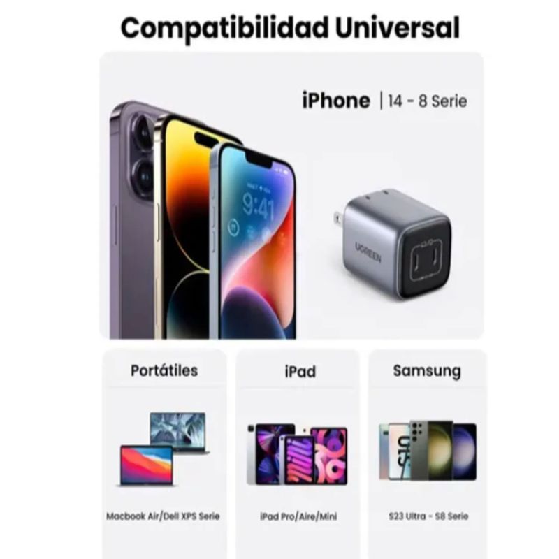 El UGREEN Nexode CD294 ofrece hasta 45W de potencia total, permitiendo cargar smartphones, tablets e incluso algunas laptops de manera rápida y segura. Su tecnología GaN garantiza una mayor eficiencia energética, menor generación de calor y un tamaño compacto ideal para uso diario.