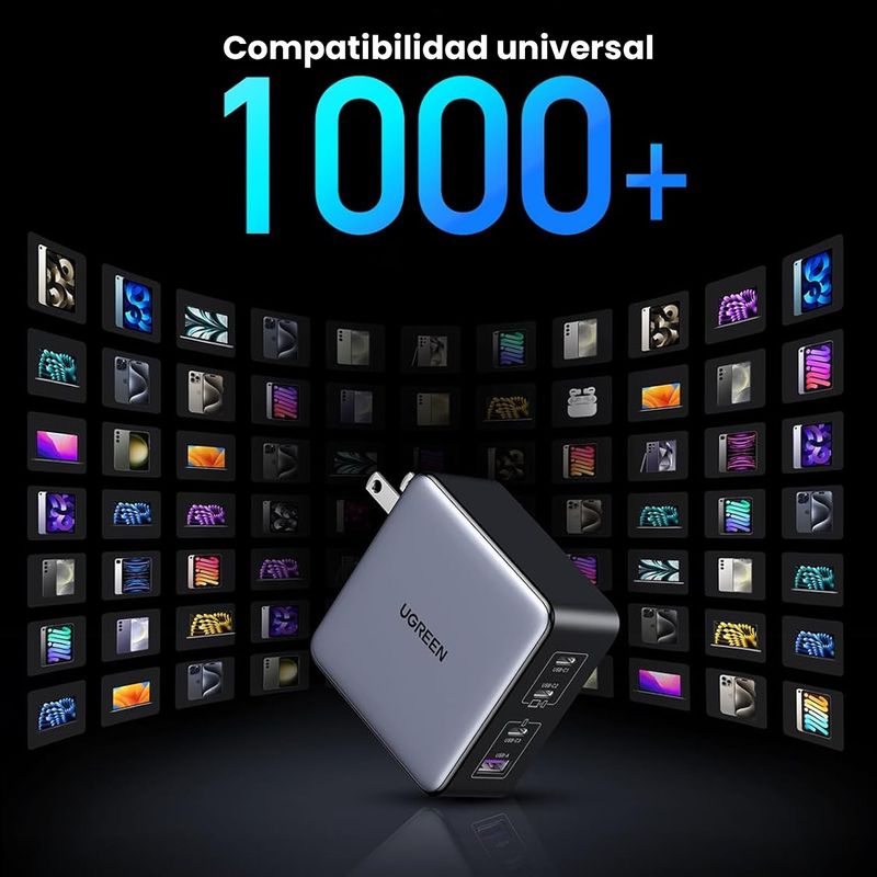 Carga inteligente 4 en 1: con 3 puertos USB C y 1 puerto USB A, carga rápida cuatro de sus dispositivos al mismo tiempo con un sistema inteligente de distribución de corriente, proporciona un total de hasta 160W de potencia