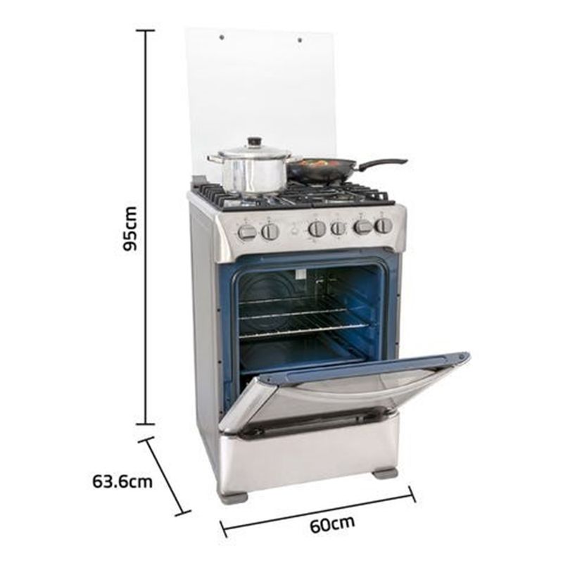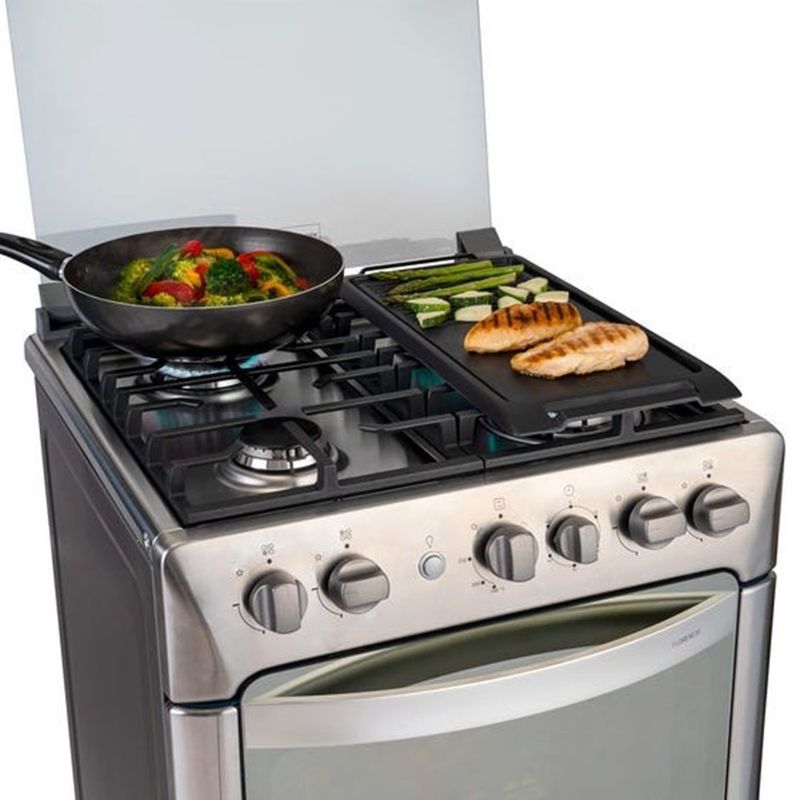 CocinasCocinas De PieCOMBO COCINA GLP INDURAMA FLORENCIA ZAFIRO CROMA 4 HORNILLAS + PACK 2 SARTEN ROJO RECORD DE REGALO