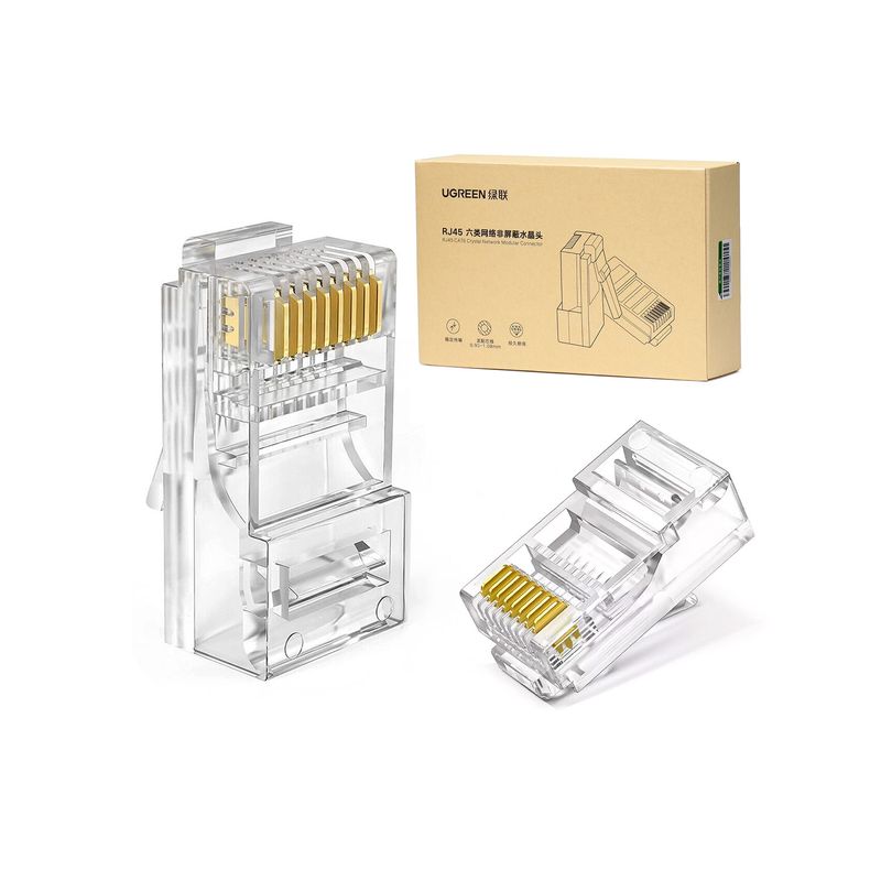 Conector Plug Cat 6 Ugreen x100un RJ45 8P8C Transparente NW120-60558 GC05180