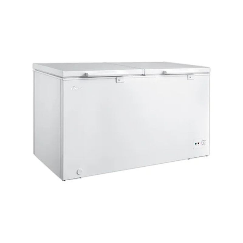 Cuenta con 362 litros de capacidad, doble puerta horizontal con llave, canastas organizadoras y control manual de temperatura para una mejor conservación de alimentos.