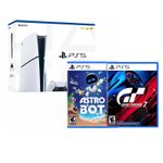 Disfruta de la nueva generación del gaming con la PlayStation 5 Slim, ahora en un diseño más delgado y ligero que mantiene la misma potencia y velocidad de la consola original. Este combo incluye la consola con lector de discos Blu-ray Ultra HD, el juego Astro Bot y el aclamado título de carreras Gran Turismo 7, para que vivas acción y realismo desde el primer momento.