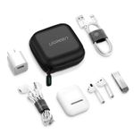 El estuche UGREEN 40816 está diseñado para proteger y transportar auriculares, cables y pequeños accesorios electrónicos de forma segura y organizada. Su exterior rígido y resistente a impactos evita daños por caídas o presión, mientras que el interior con forro suave y compartimientos ajustables mantiene todo en su lugar. Compacto y elegante, es ideal para viajes, oficina o uso diario.