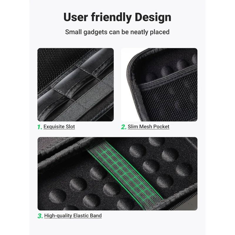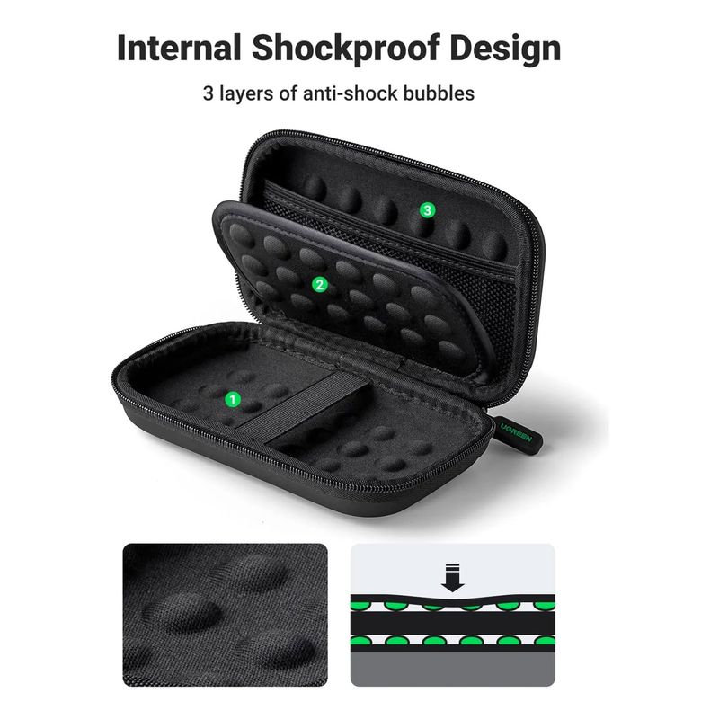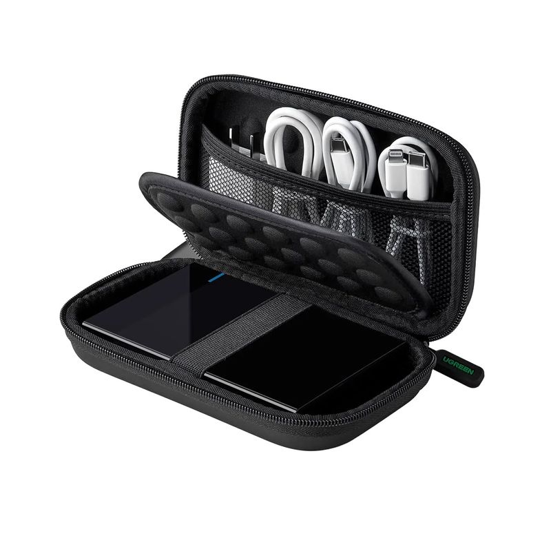 El estuche para disco duro UGREEN LP128 está diseñado para proteger y transportar unidades de almacenamiento externas como discos duros portátiles y SSD. Su construcción resistente combina protección, comodidad y funcionalidad, ideal para quienes viajan, trabajan lejos de casa o requieren organizar sus dispositivos con seguridad y estilo.