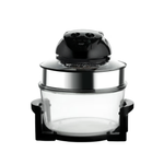Potencia: 3500W., Voltaje: 220V., Capacidad: 12L + 5L (con accesorio adicional)., Material: Vidrio templado, acero inoxidable y plástico resistente., Funciones:, Superficie antiadherente para una limpieza fácil., Control de temperatura ajustable (hasta 250°C)., Temporizador mecánico (0-60 minutos)., Sistema de calentamiento por circulación de aire de 360°., Bajo consumo de aceite para cocinar de forma saludable., Iluminación interna para mejor visualización durante la cocción., Tazón transparente que permite monitorear el proceso sin abrir la tapa., Tecnología: Circulación de aire caliente a alta velocidad para cocinar uniformemente., Control: Botones táctiles con pantalla LED intuitiva.