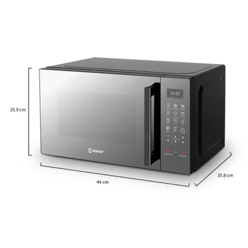 Marca: MIRAY, Modelo: HMM-205N, Tipo de producto: Hornos Microondas, Capacidad de horno (lt): 20, Panel digital: Sí, Potencia (w): 100, Seguro para niños: Sí, Luz interior: Sí, Capacidad (lt): 20, Ancho (cm) 44, Alto (cm) 25.9, Largo (cm) 35.8, Peso (kg) 10.46, Funciones de cocción: