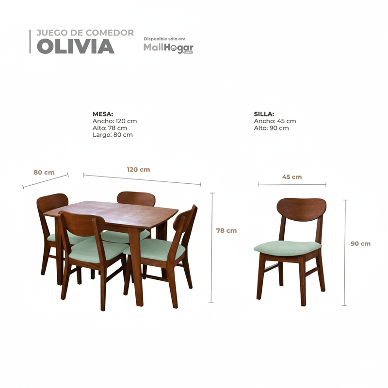Mesa: 80cm (Ancho) x 78cm (Alto) x 120 (Largo)