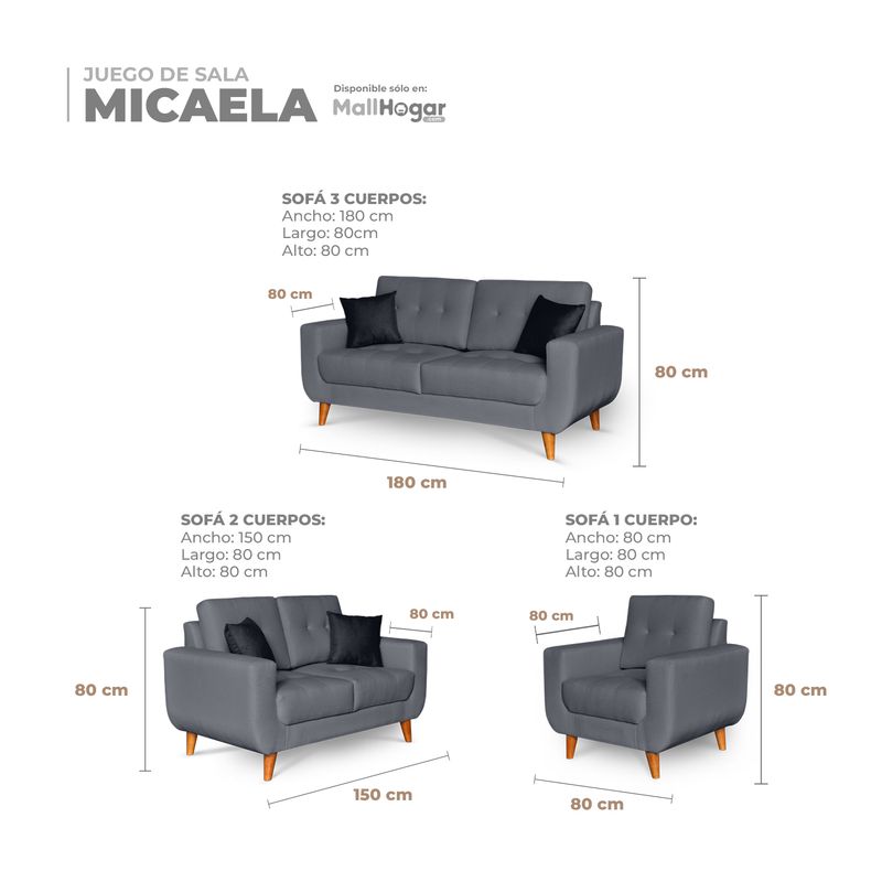 Muebles Y OrganizaciónSalaJuegos De SalaJuego de Sala Micaela 3-2-1 - Gris Oscuro