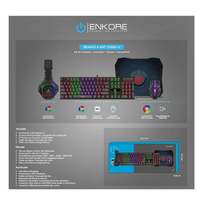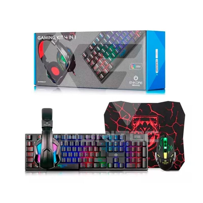 KIT GAMER BRAVIO TECLADO+MOUSE USB+AUDIFONO+PAD MOUSE