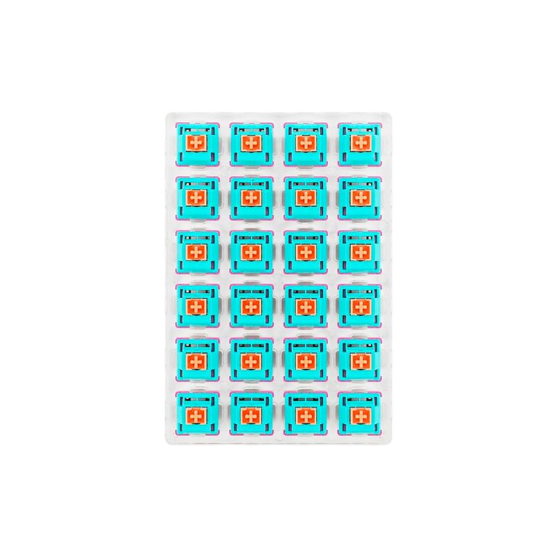 hay 24 interruptores en la caja, con teclas adicionales y extractor de interruptores, cada interruptor tiene una durabilidad de 50 millones de clics. Componentes internos extremadamente resistentes al desgaste con características IP40 a prueba de polvo que proporcionan una vida útil de calidad duradera y estable.