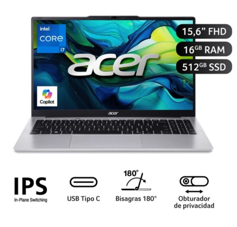 TecnologíaComputoLaptopsLaptop Acer Intel Core I7-13620h 16gb 512gb 15.6 Fhd