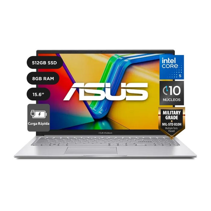 La ASUS X1504VA está diseñada para quienes buscan rendimiento, estilo y portabilidad en un solo equipo. Equipada con el procesador Intel Core i5-120U, 8GB de memoria RAM y un rápido almacenamiento SSD de 512GB, ofrece una experiencia ágil y fluida para el trabajo, los estudios o el entretenimiento. Su pantalla Full HD de 15.6 pulgadas brinda imágenes claras, colores vibrantes y un amplio campo visual que mejora la productividad y la experiencia multimedia.