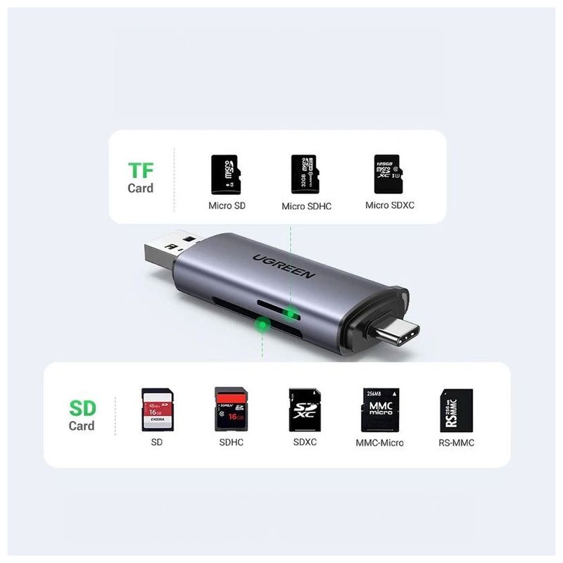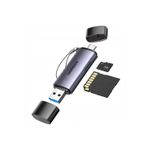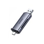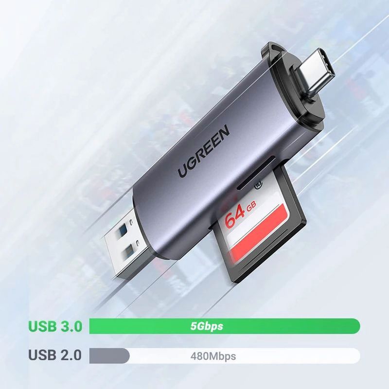 El lector de tarjetas UGREEN 2 en 1 permite transferir datos de forma rápida y eficiente entre tarjetas SD/TF y dispositivos compatibles. Gracias a su doble interfaz USB-C y USB 3.0, ofrece gran versatilidad y compatibilidad con laptops, PC, tablets y smartphones que admitan OTG.