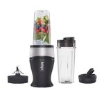 Su sistema “Pulse & Blend” es muy sencillo: presiona el vaso para licuar y coloca la tapa antiderrame para llevar tu bebida a donde quieras. Incluye vaso Tritan™ de 470 ml, libre de BPA, resistente y fácil de limpiar (apto para lavavajillas). Su diseño elegante en negro y plata combina con cualquier cocina. Ideal para smoothies, jugos y batidos diarios.