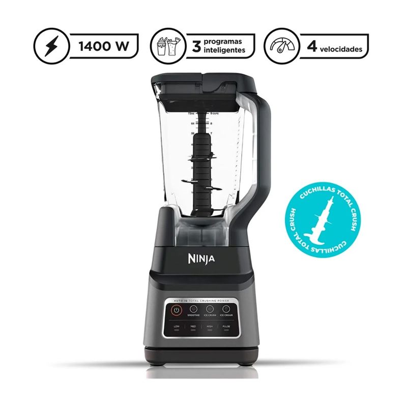 La Licuadora Profesional Ninja BN701CL (2 L) ofrece alto rendimiento gracias a su motor de 1400 W de potencia máxima, ideal para triturar hielo, frutas congeladas e ingredientes duros. Incorpora tecnología Auto-iQ, con programas automáticos que ajustan pulsos y velocidades para obtener texturas homogéneas sin esfuerzo. Cuenta con jarra de Tritán libre de BPA, cuchillas Total Crushing de acero inoxidable, modos manuales y función pulso. Su base estable con pies antideslizantes reduce vibraciones y facilita un uso seguro. Las piezas desmontables son aptas para lavavajillas, lo que permite una limpieza rápida y sencilla. Ideal para batidos, bebidas congeladas, salsas y jugos.