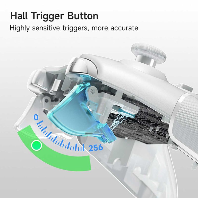 Diseño del gatillo Hall: el gamepad inalámbrico 9013 Pro 2.4g actualiza el gatillo lineal a un gatillo Hall, por lo que en el juego, su operación y control serán más delicados y la vida útil del gatillo también se extenderá.