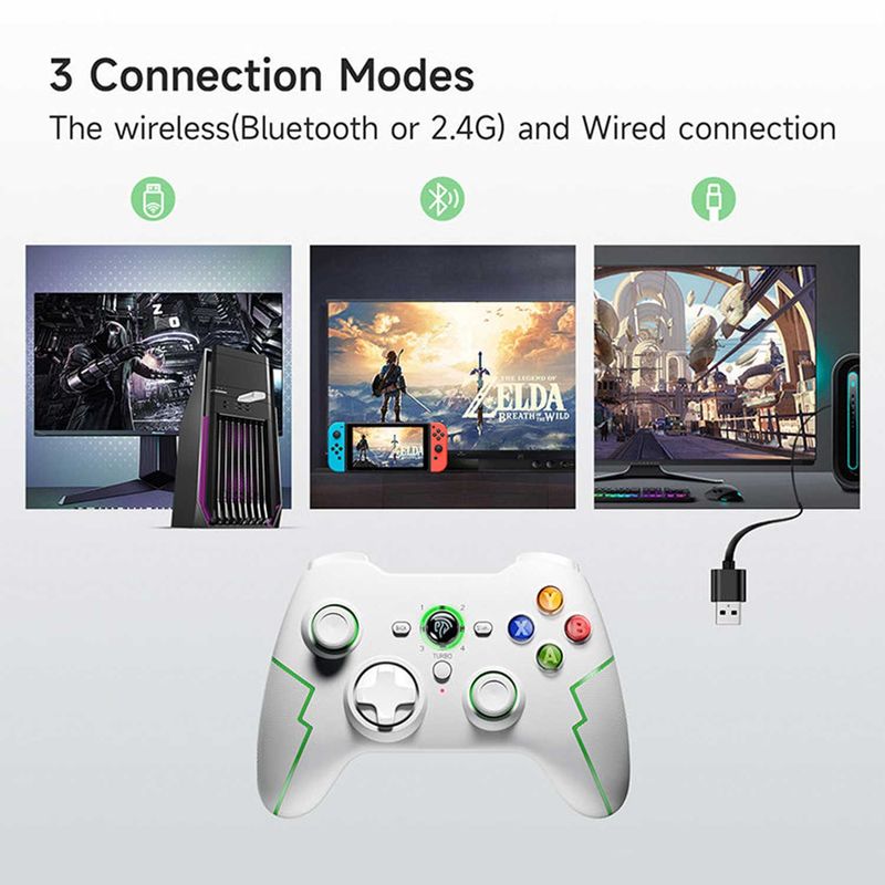 Conectividad inalámbrica estable: gracias a la tecnología de conexión inalámbrica Bluetooth y de 2,4 GHz, podrás disfrutar de una experiencia de juego estable y con menor latencia con un alcance de hasta 10 metros (32,8 pies). Podrás jugar cómodamente sin preocuparte por interferencias de señal o pérdida de datos.
