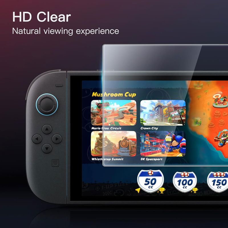 Mantén la pantalla de tu Nintendo Switch 2 protegida y como nueva con esta mica de vidrio templado de alta resistencia. Diseñada específicamente para cubrir perfectamente la pantalla de la consola, ofrece una dureza 9H que protege contra rayones, impactos leves y huellas dactilares.