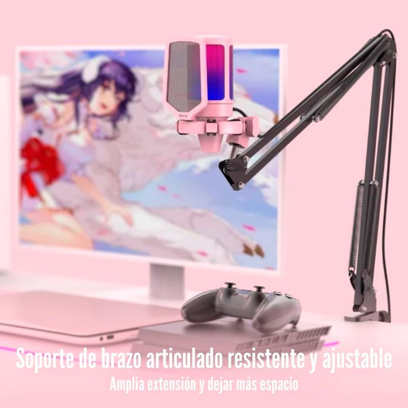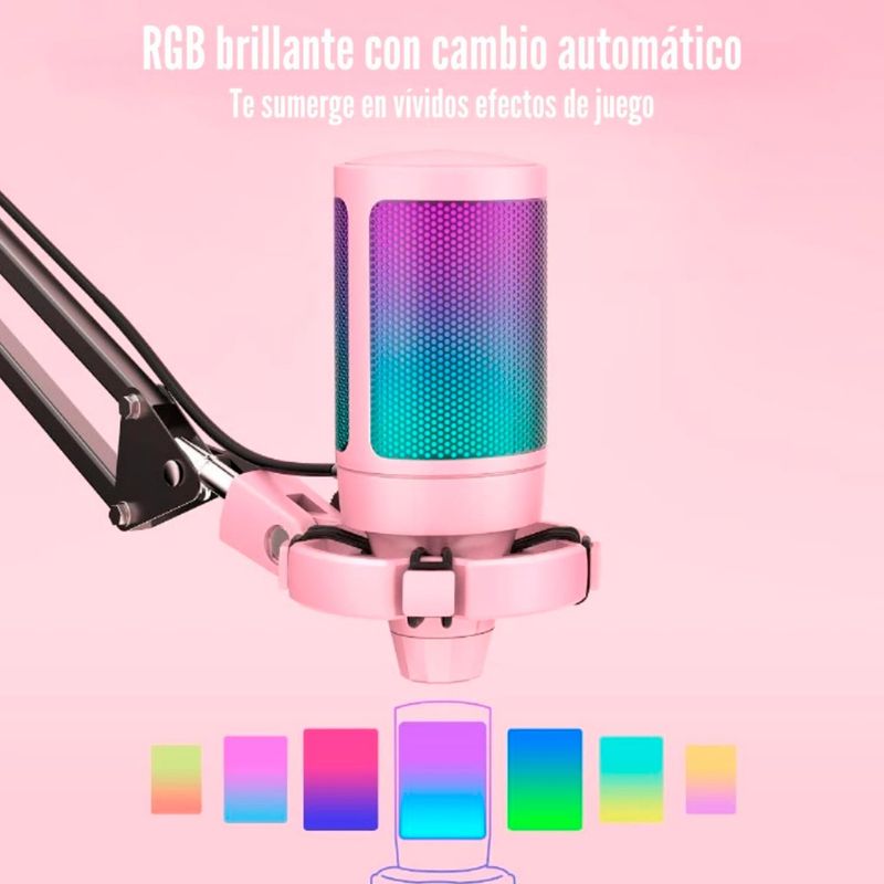 El gradiente automático de dos tonos RGB hace que tu micrófono sea la guinda del pastel. Con efectos de luz suaves y coordinados, tu vídeo durante el juego o transmisión en vivo será más llamativo. Haz que tu canal destaque en las listas de clasificación. Si solo eres un jugador de juegos, la gran combinación RGB con los accesorios de tu ordenador de colores fluidos puede satisfacer las necesidades de una mayor atmósfera de juego.
