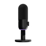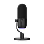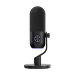 Incorpora un botón táctil para silenciar el micrófono instantáneamente, indicado por un cambio en la luz RGB. También incluye control de ganancia (volumen de entrada) mediante un dial giratorio en la base para ajustar la sensibilidad.
