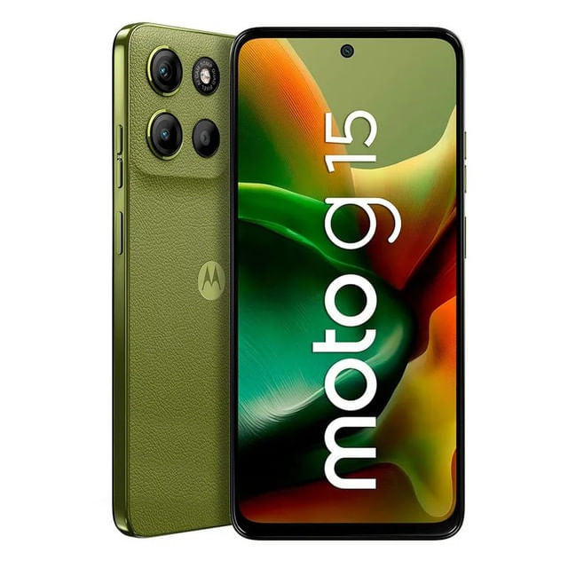 El Motorola Moto G15 con 4 GB de RAM y 256 GB de almacenamiento es un smartphone de gama de entrada que destaca por su generosa capacidad de memoria, pantalla Full HD+ de 6.72" y diseño con acabado en cuero vegano.