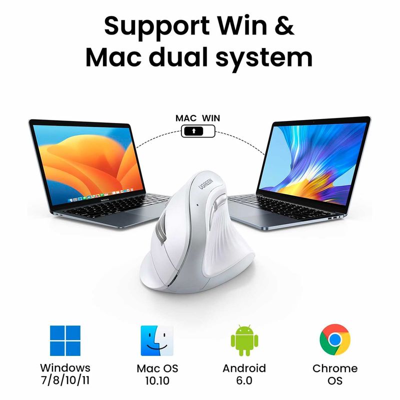 El ratón inalámbrico vertical multimodo Ugreen MU008 destaca por su diseño ergonómico. Coloca la muñeca en un ángulo más natural, reduciendo la tensión durante el uso prolongado. Con dos modos de conexión, Bluetooth o USB, es fácil de conectar a diferentes dispositivos. Los clics silenciosos ofrecen una experiencia tranquila sin molestar a los demás. Sin iluminación, el diseño se mantiene simple y limpio, perfecto para quienes prefieren un aspecto minimalista. Este ratón inalámbrico ofrece libertad de movimiento sin la molestia de los cables , lo que lo hace ideal tanto para la oficina como para el hogar. Es fácil de configurar, funciona a la perfección con la mayoría de los dispositivos y garantiza comodidad durante el uso prolongado.