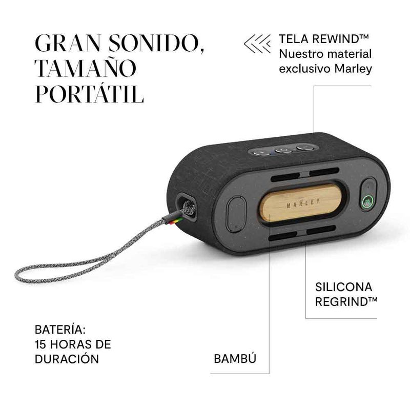 - Fabricado con bambú, tela REWIND™, silicona y aluminio; adoptando el mensaje de artesanía y sostenibilidad de Marley.