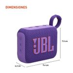 El parlante JBL Go 4 Bluetooth en color morado ofrece sonido potente y calidad de audio JBL en un diseño compacto y moderno, ideal para llevar tu música a cualquier lugar. Perfecto para uso diario en casa, oficina o actividades al aire libre, combina conectividad inalámbrica, portabilidad y batería de larga duración para una experiencia de audio versátil.
