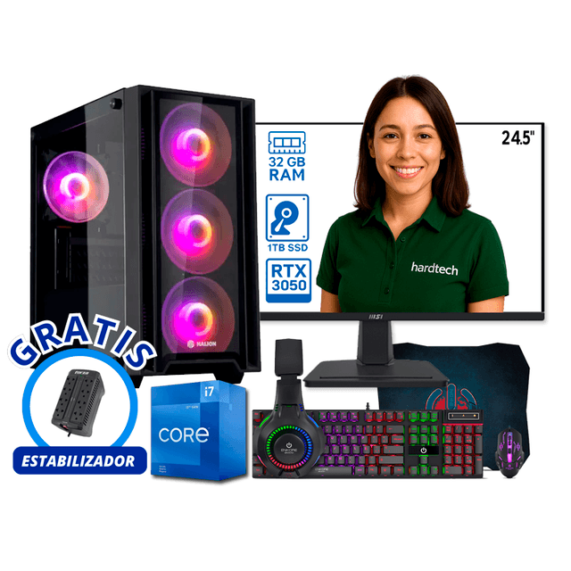 COMPUTADORA GAMER PROCESADOR INTEL CORE I7-12700F, 32GB RAM, SSD 1TB, RTX 3050
